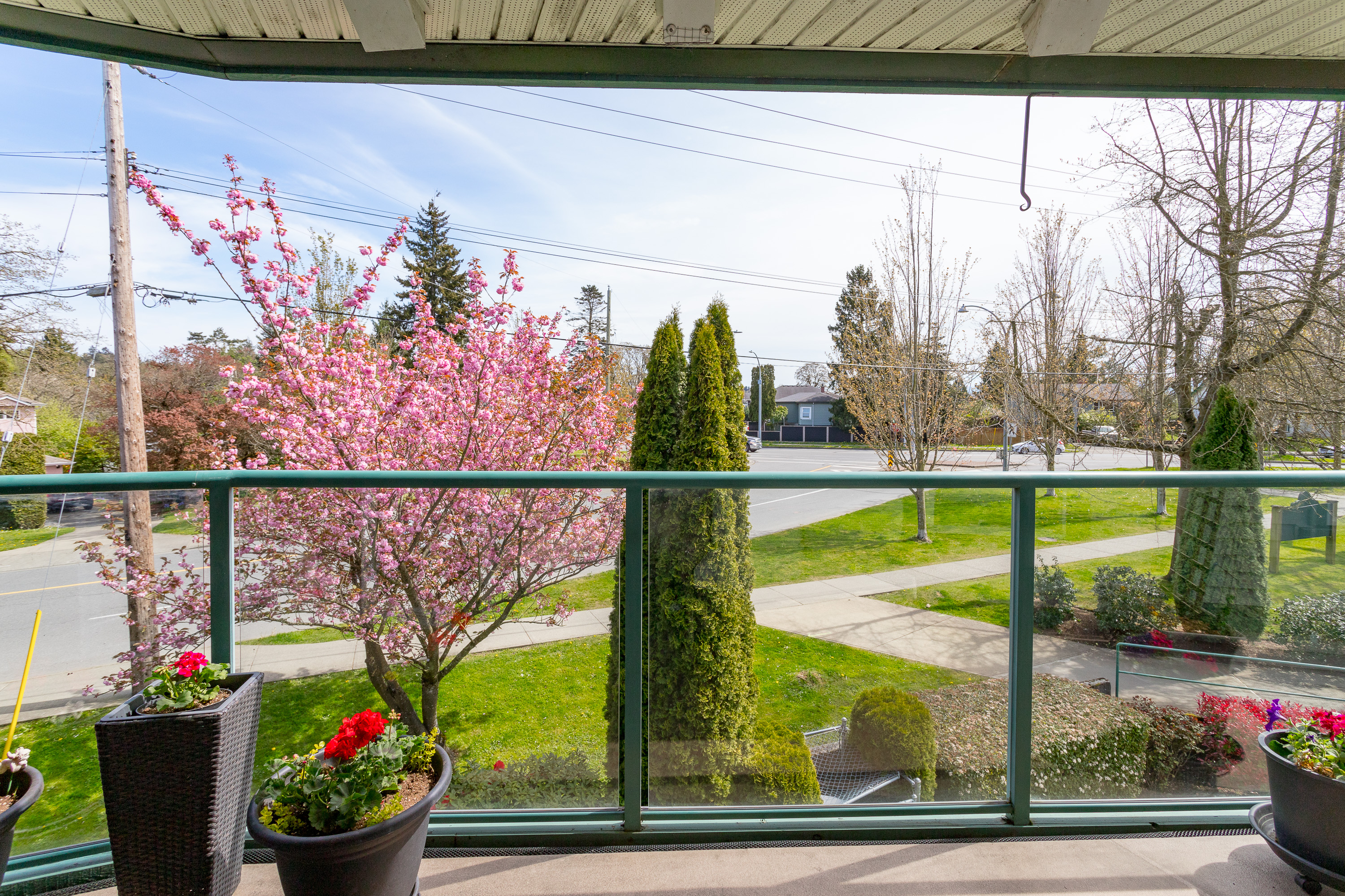 Looking for a spacious, light-filled, pet-friendly, SE corner unit with 2 bedrooms and 2 bathrooms, and a parking space? Don't miss this one! With 915 fin sq ft of updated interior space and a bright kitchen that opens onto a relaxing 113 sq ft corner balcony, you will love being home. The living/dining room has a cozy gas fireplace, with gas included in the strata fee. The suite was thoroughly updated in 2019. The primary bedroom fits a king bed and has an ensuite with shower; the main bathroom has a tub. The spacious laundry room has a large LG Washer/Dryer and ample storage. The walk in closet in primary bedroom, closet in second bedroom and the laundry have Incredible Homes closets installed to make organization easy. The central location is extremely convenient with just a short drive into town, public transit nearby, and only a short walk to the Galloping Goose as well as to the outstanding shopping & services at Uptown Centre, with Walmart, Whole Foods, Save-on-Foods, cafes, and so much more!